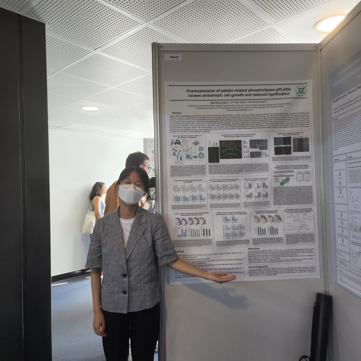 서해성 학생의 애기장대 pPLAIIIg의 과발현에 의한 리그닌 함량, 세포 신장패턴의 변화 관련 연구의 포스터 발표가 있었습니다.